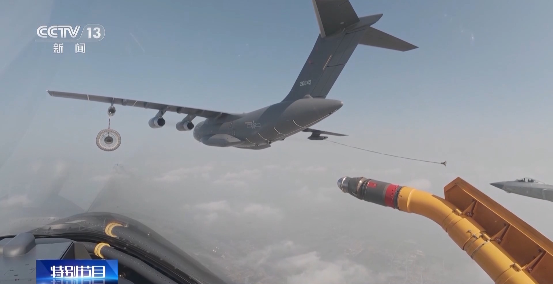 加受油机梯队的亮相,空中加受不仅可以充分发挥战斗力“倍增器”的作用,战歌回荡。