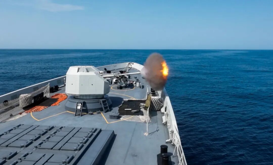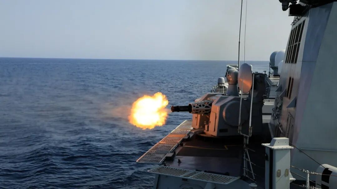 亚丁湾某海域,“海上猛虎艇”红河舰开展实际使用武器训练
