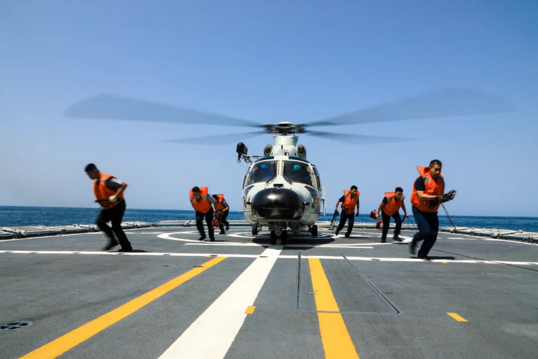 近日亚丁湾某海域正在执行护航任务的海军第47批护航编队红河舰开展多观察实际使用武器训练▲红河舰“战斗救援……”“另一‘敌’舰艇正向我舰快速逼近” ……雷达战位发现目标正在航行的红河舰调整至攻击阵位▲主