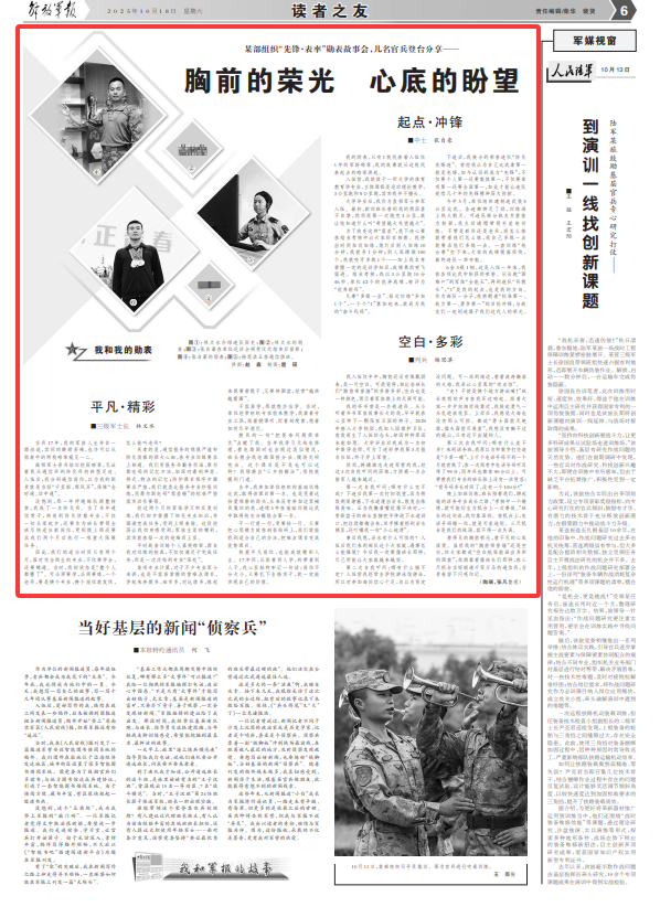 某部组织“先锋·表率”勋表故事会,我承认心里真的“有点怕”。上千个电话号码不到一个月就背熟了,3公里跑和5公里跑,