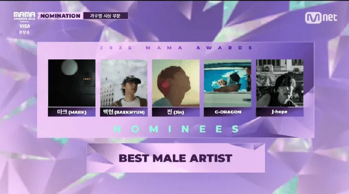 “最佳男SOLO”提名包括边伯贤、宋雨所属金智秀、琦女