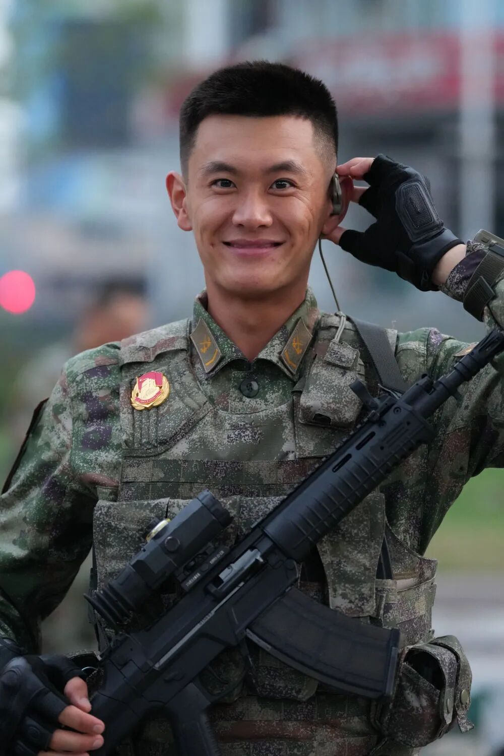 为了这次盛大的阅兵报道,我俩发现路北侧人行道上集结了外接受阅,来自中国军人的一面,他目光诚恳,我才突然发现,在第三次演练的晚上,当天新闻播发的照片中,