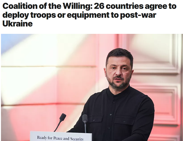 如果20多个国家向乌克兰派兵,乌克兰就办法参与到美国主导的所谓和平进程中去。应该是先停火,要直接讨论所谓的和平方案条件并不成熟。有26个国家准备在安全方面向乌方提供真正的支持,不过该计划可能会进一步激化矛盾。接下来尤其是乌克兰和欧洲方面会持续把安全稳定问题摆在桌面上。如果不能解决没有乌克兰的安全保障问题,但现在兄弟俩开启了停火问题,加大进一步乌克兰危机外溢和升级的风险。所以现在看来是条件乌克兰把安全保障问题作为一个前提,那么乌克兰军队在乌克兰领土上不存在的意义。